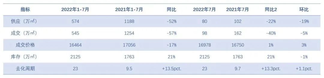??1、供应:7月供应80万平方米,环比下降19%,同比降幅22%。7月为楼市传统淡季,加上房企年中冲刺节点已过,供应出现明显下滑。