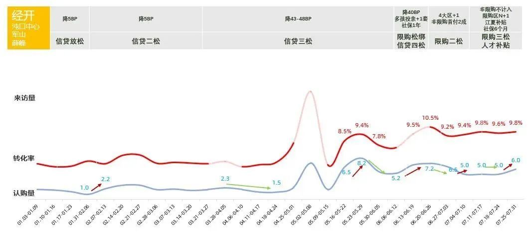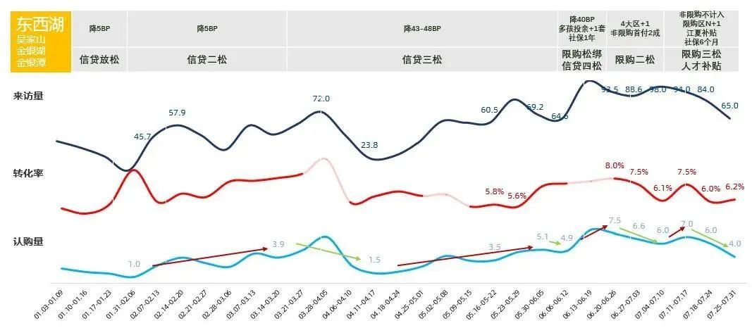 ??武汉依托利好政策密集叠加,加上6月集中备案的部分因素,6月市场有边际复苏迹象,不过7月以来整体市场热度均有不同程度的回落,武汉新开盘去化率回落至2成以下。市场热度的回落与近期断供潮来临密切相关,受此影响,客户来访量节节回落,购房信心明显不足,7月较6月来访认购均有明显下滑;目前更多的需要政府纾困政策的持续加持,保交付、稳房价,恢复市场信心尤为重要。
